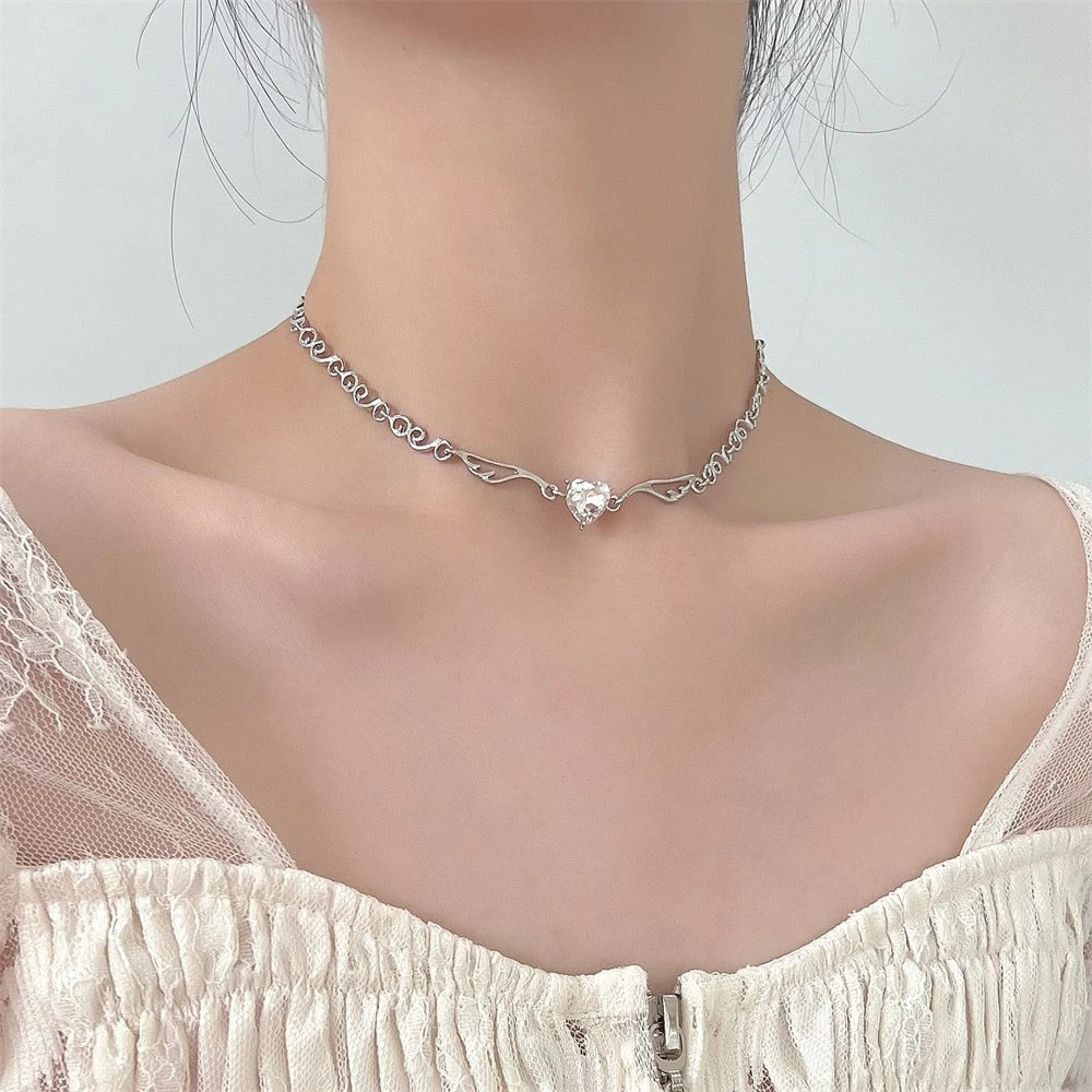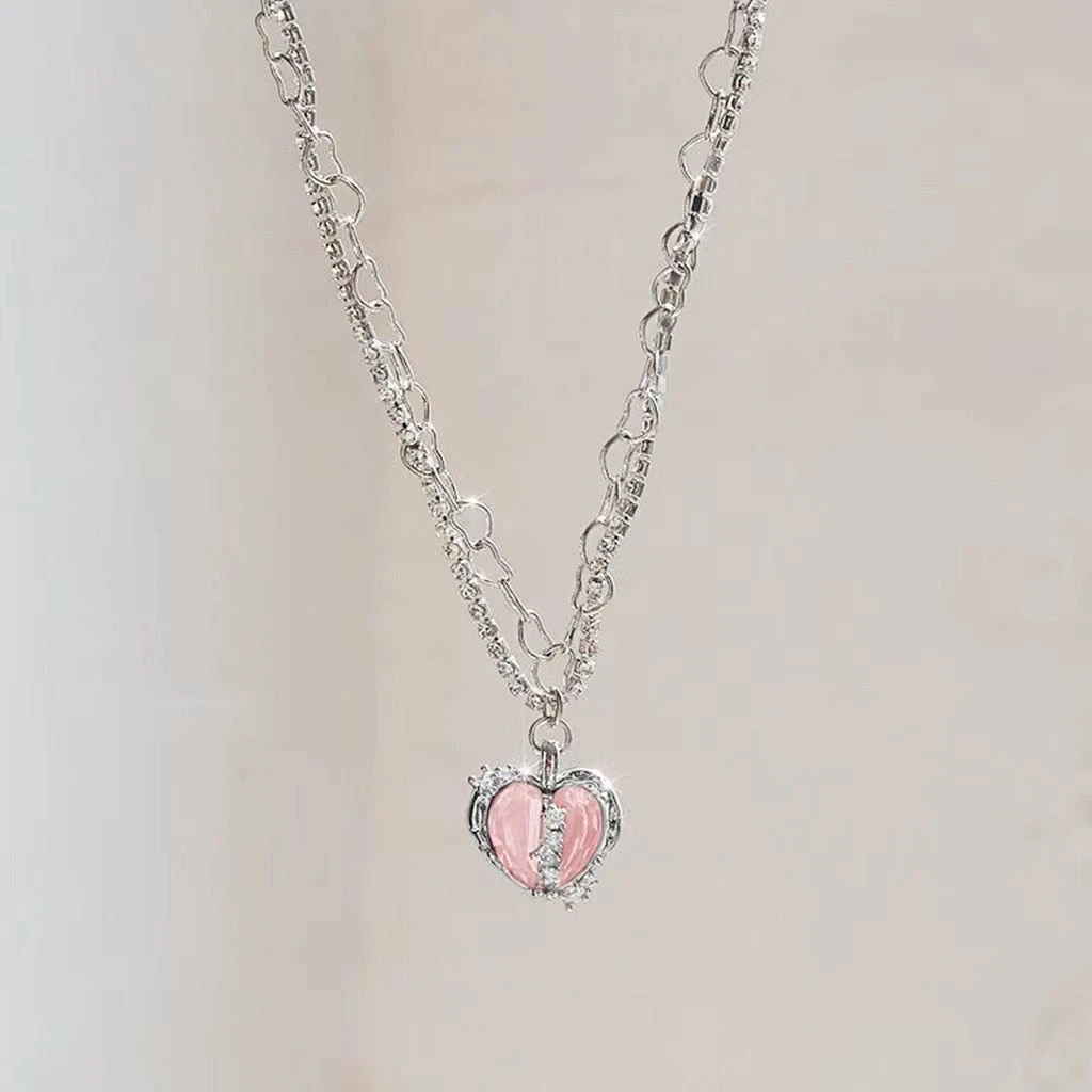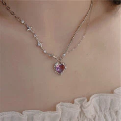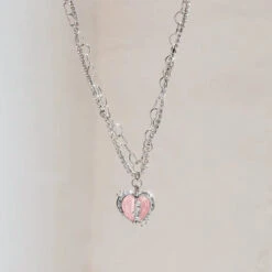- Kawaii Aesthetic: A beautiful pink crystal heart pendant surrounded by shiny silver accents that adds a sweet touch to any outfit.