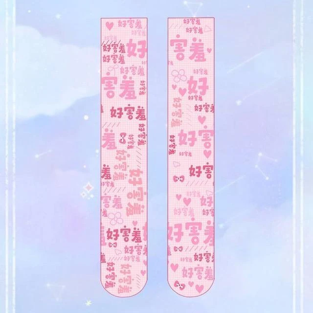 These deliciously sweet strawberry stockings have a vibrant berry & baby bun print that compliments any  kawaii outfit!