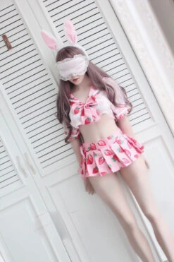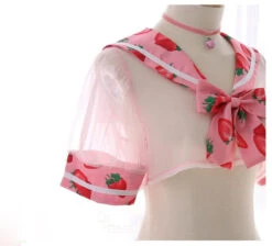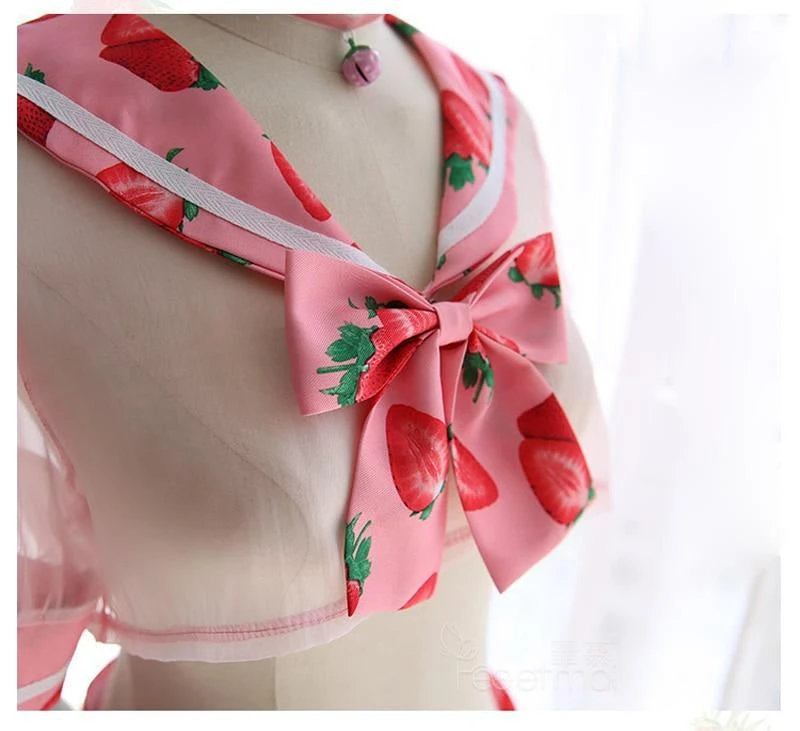 - This adorably sweet school girl inspired lingerie set combines ripe juicy berries mixed with see-through mesh, caped style school girl top, and a pleated skirt strawberry skirt for the perfect combination of kawaii and seduction!