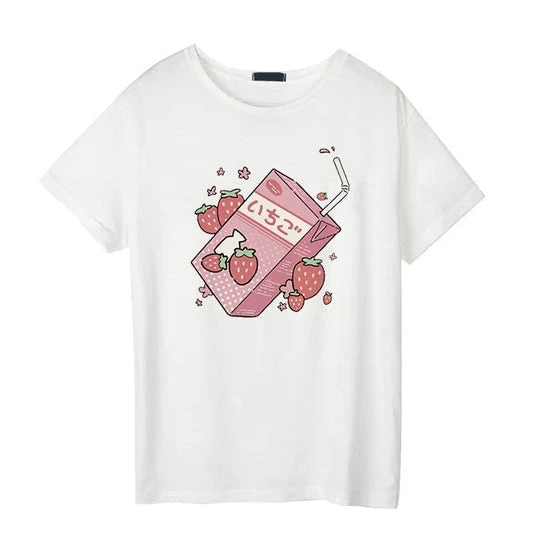 - This cute Japanese inspired strawberry milk themed shirt will be your new favorite go-to tee for everyday kawaii wear.Â