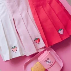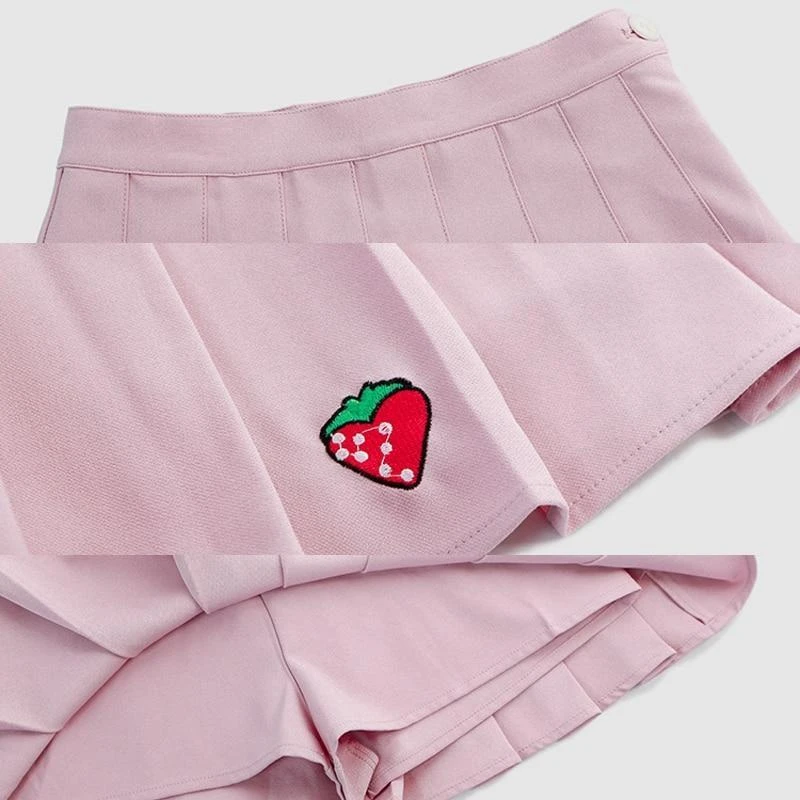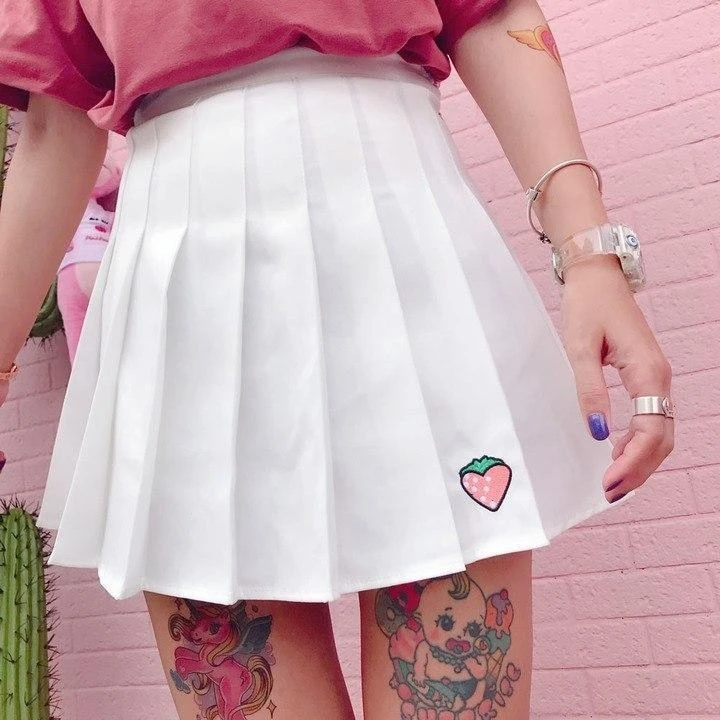 - Satisfy your need for a perfect school girl tennis skirt with this beautiful strawberry pleated skirt!Â