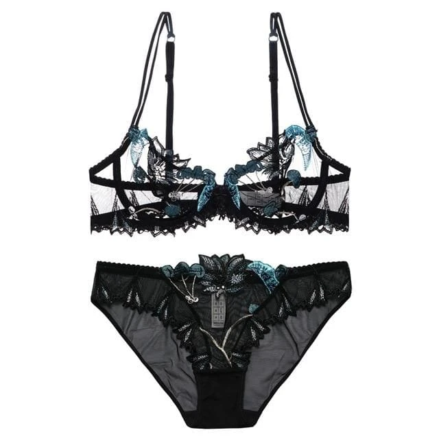 - This sweet embroidered chiffon lace bra and panty set has gorgeous hand-details including ruffles in all the right places!