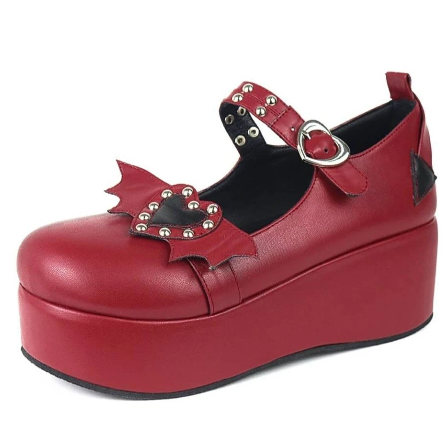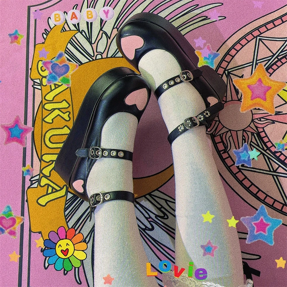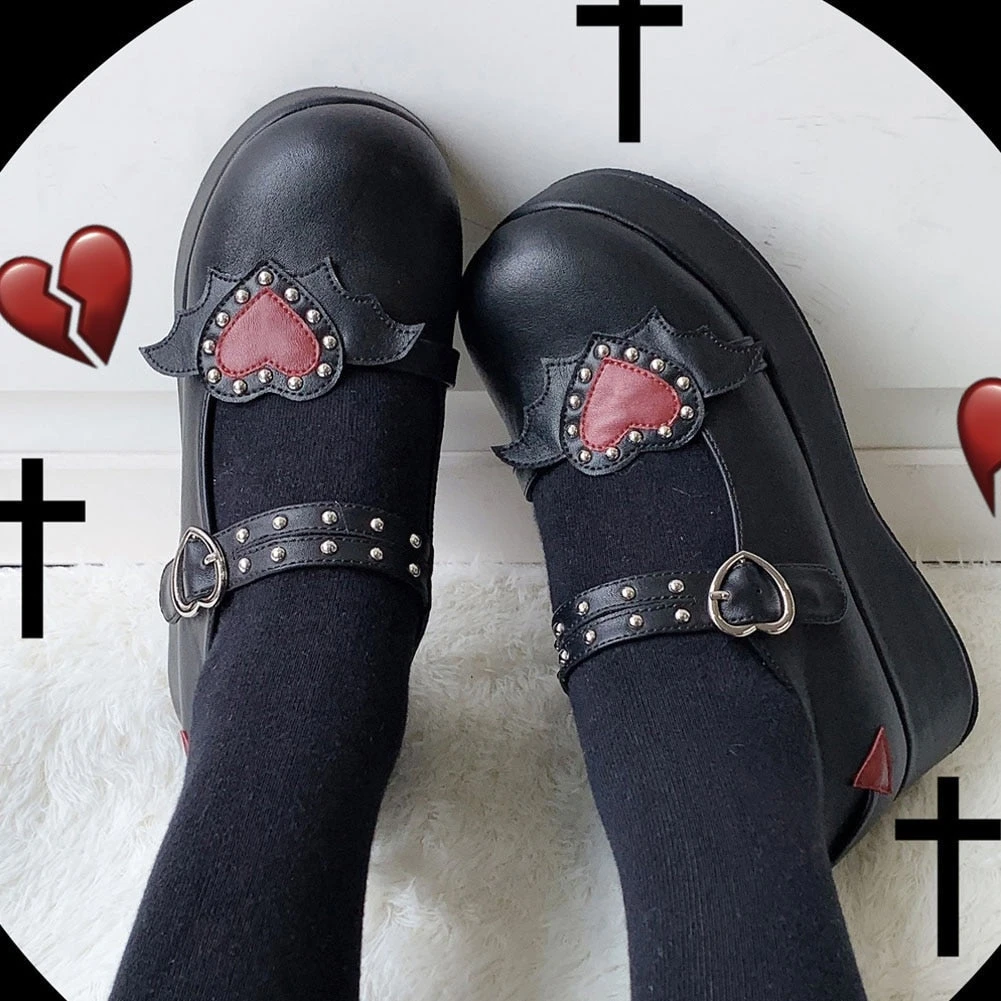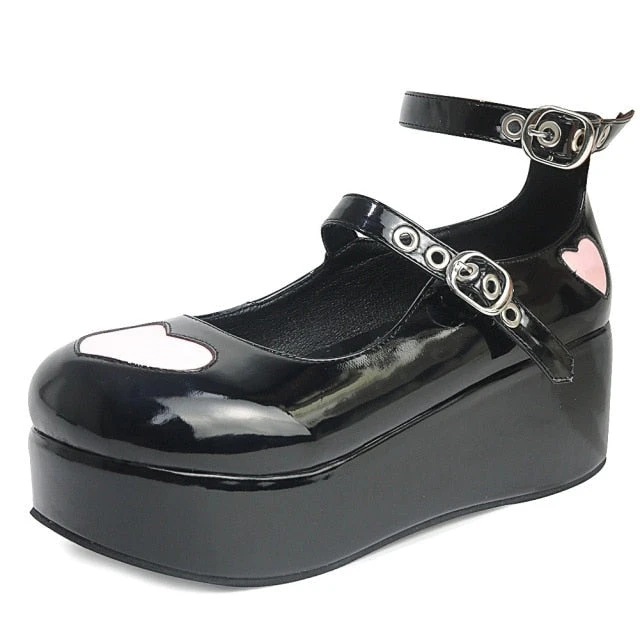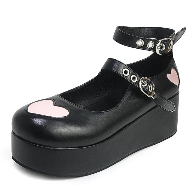 - These badass platform wedge heart-buckle shoes scream “Babydoll”!