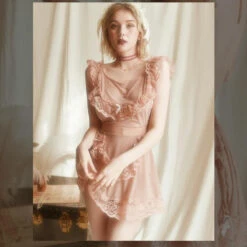 - A two piece set with a flouncy top that functions as a very elegant and dainty dress, with matching panties for underneath!Â