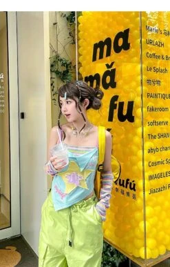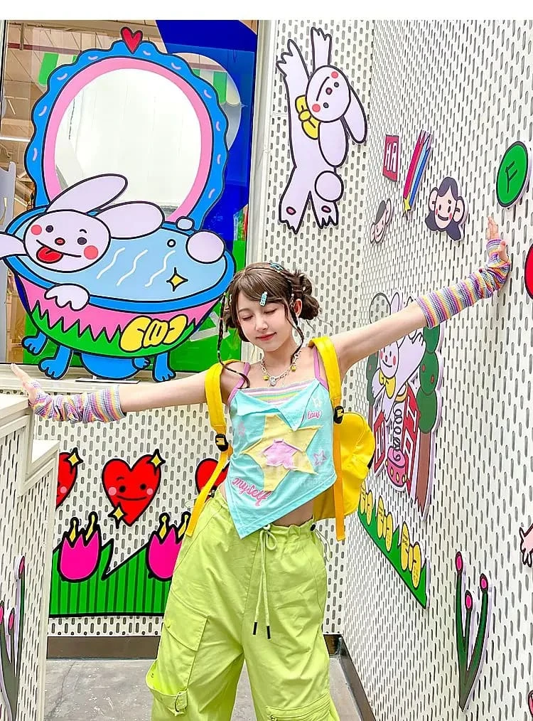 Bring on the nostalgic drama with the Y2K Star Girl Asymmetrical Tank Top—because basic just isn’t in your vocabulary. This cute, colorful piece is bursting with pastelcore energy and is a must-have for your kawaii or fairy kei closet.