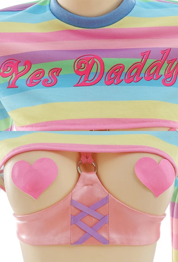 - This cute pastel rainbow “Yes Daddy” lingerie cosplay set comes complete with everything you need to please!